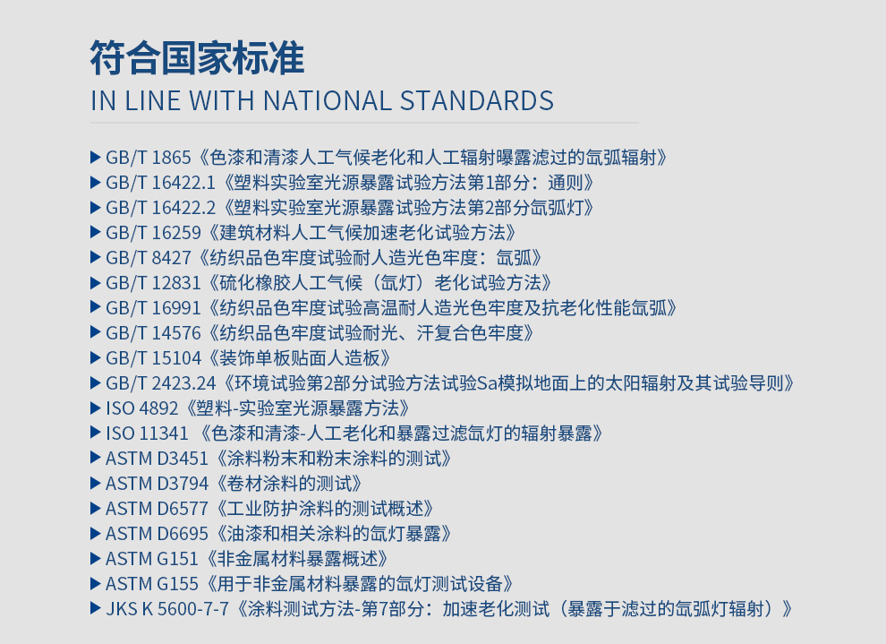 氙灯试验箱采用能摸拟全阳光光谱的氙弧灯来再现不同环境下存在的破坏性光波,可以为科研、产品开发和质量控制提供相应的环境模拟和加速试验。氙灯试验箱可用于新材料的选择、改进现有材料或评估材料组成变化后耐用性的变化试验,可以很好的模拟在不同环境条件下,材料暴露在阳光下所产生的变化。适合各类科研单位,大专院校,检测机构,电子、电器、通讯、汽车配件、塑胶制品、金属、食品、化学、建材、医疗、航天等制品检测质量之用。